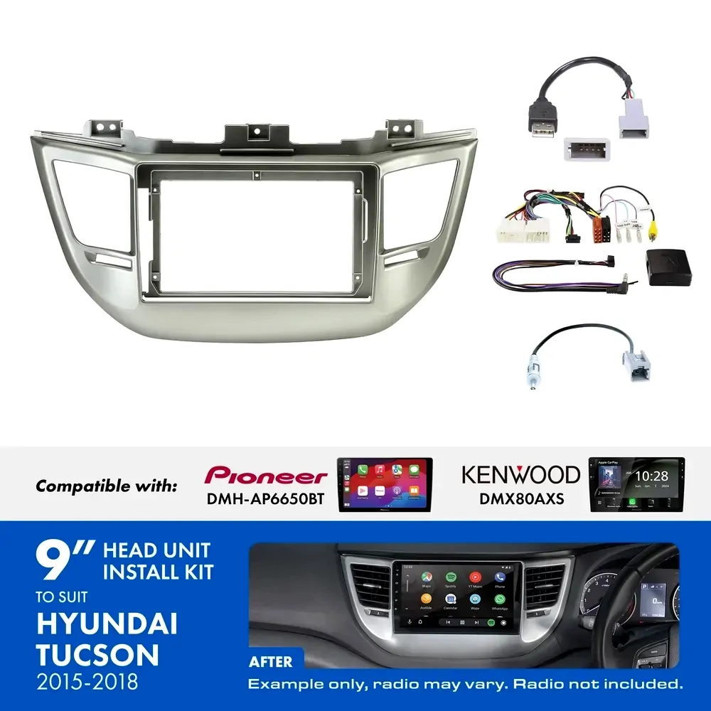 The Aerpro AKHY11 9" Installation Kit comes with all of the components required to install a 9" trapezoid shaped radio into your Hyundai Tucson 2015-2018 vehicles whilst maintaining important vehicle features such as Steering Wheel Control functionality.