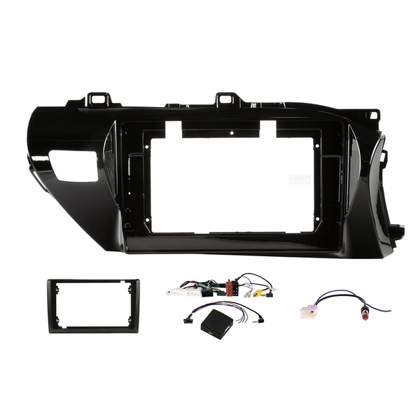 The Aerpro AKTO3 9/10" Installation Kit comes with all of the components required to install a 9/10" trapezoid shaped radio into your Toyota Hilux (2020-) vehicles without factory amplifier, whilst maintaining important vehicle features such as Steering Wheel Control functionality.