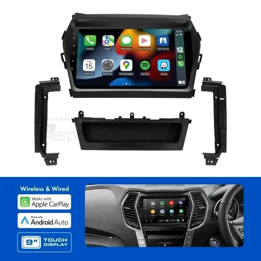 The Aerpro AMAHY25 9" Multimedia Receiver with Wireless Apple CarPlay and Android Auto suits Hyundai Santa Fe (2013-2018) vehicles. Featuring a large 10" capacitive touchscreen display, this Multimedia Receiver has Apple CarPlay and Android Auto which can be used wireless or wired, built-in Bluetooth for hands-free phone calls & wireless audio streaming, dual rear USB inputs as well as an AM/FM radio tuner. Sound quality is superb with 50Wx4 max output, 8 band graphic EQ and time alignment capabilities, amplifiers can be added to the system via the 4V/5CH RCA preouts. Supplied as a complete Head Unit Upgrade Kit, the Aerpro AMAHY25 includes all the parts required to complete the installation and retains important vehicle features including steering wheel controls.