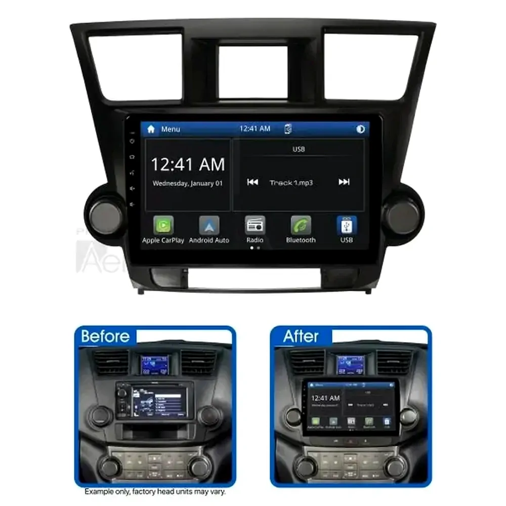 The Aerpro AMTO45 10" Multimedia Receiver with Wireless Apple CarPlay and Android Auto suits Toyota Kluger Grande (2007-2013) non-amplified vehicles with factory navigation. Featuring a large 10" capacitive touchscreen display, this Multimedia Receiver has Apple CarPlay and Android Auto which can be used wireless or wired, built-in Bluetooth for hands-free phone calls & wireless audio streaming, rear USB input as well as an AM/FM radio tuner. Sound quality is superb with 40Wx4 max output, 8 band graphic EQ and time alignment capabilities, amplifiers can be added to the system via the 4V/5CH RCA preouts. Supplied as a complete Head Unit Upgrade Kit, the Aerpro AMTO45 includes all the parts required to complete the installation and retains important vehicle features including steering wheel controls and factory reverse camera (if equipped).