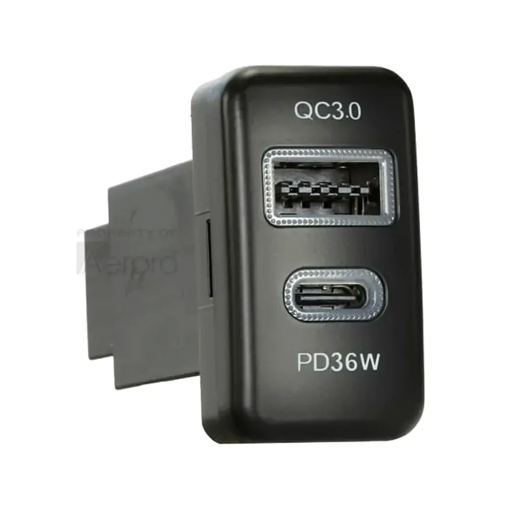 Aerpro APCCTO6 Dual USB charger USB-c pd36w / USB-a qc3.0 to suit Toyota 22mm x 40mm