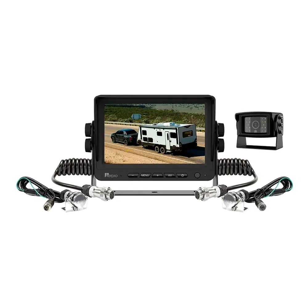 Experience enhanced caravan towing safety and surveillance with the Aerpro AVK7C1 7" AHD Caravan Monitor Camera Kit. This comprehensive kit combines state-of-the-art technology from the Aerpro Advanced Safety Vision Systems range, featuring the AVM7 7" AHD Monitor, AVC3 AHD 1080P Heavy Duty Surface Mount Camera, ARTK1 Heavy Duty Trailer connection kit and two AVEC10 10M Camera Extension Cables.