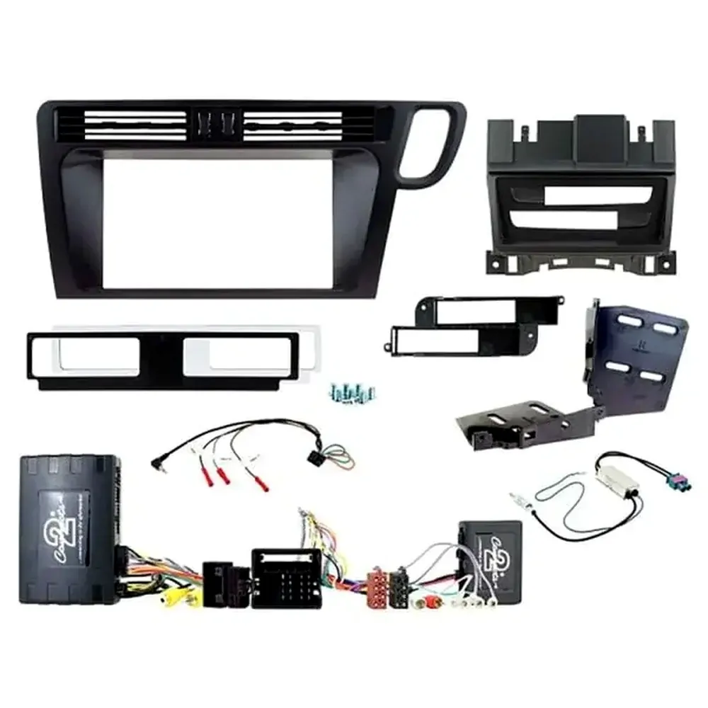 Complete a full aftermarket double din head unit installation in your Audi Q5 (2009-2016) MMI vehicle with factory MOST amplified system, with this Aerpro FP8574K Installation Kit. The kit will retain important factory features including steering wheel controls, phone button and reverse camera system (if equipped). Containing everything you need for a perfect upgrade in one box, this kit includes: a matte black double din facia kit with integrated air vents, air vent bracket and mount, MMI Button panel and bracket, mounting brackets, mounting hardware, infodapter interface with main wiring harness, antenna adapter and universal steering wheel control patch lead. To simplify installation add an Aerpro APP8 or APP9 aftermarket head unit harness which will connect from the aftermarket head unit directly into the steering wheel control interface harness supplied in this kit.