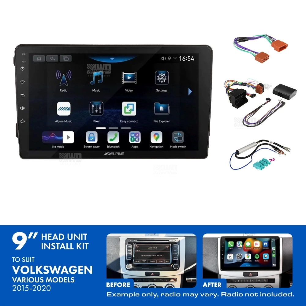 Alpine INE-AW409S + Aerpro AKVW14 Bundle 9" Trapezoid Head Unit with Install Kit Fits various volkswagen models 2015-2020