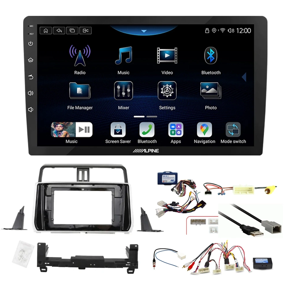 Alpine INE-AX809 9" Trapezoid Head Unit Bundle for 2017-2020 Toyota LandCruiser Prado 150 Series with non 360 camera, GXL model with Factory Amplifier