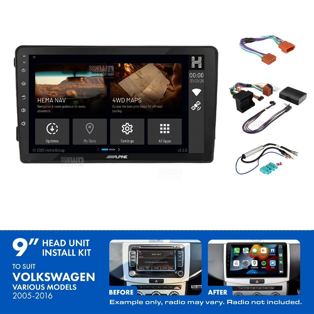 This complete bundle includes the Alpine trapezoid head unit and installation kit for a seamless and easy installation.