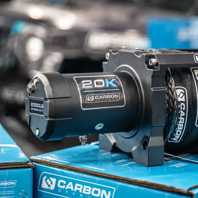 Carbon Offroad Scout Pro 20K Winch – A heavy-duty 37.2 kg truck winch delivering a massive 20,000 lb pull with a 7 HP motor, 3-stage planetary gearbox, automatic brake, and 600 A sealed solenoid. Supplied with wired and wireless remotes, it’s built tough for extreme offroad recovery.