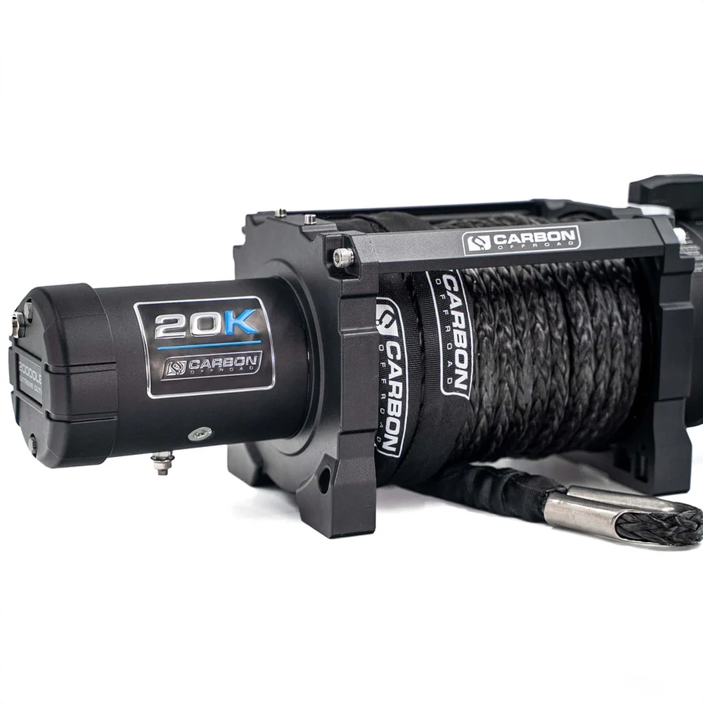 Carbon Offroad Scout Pro 20K Winch – A heavy-duty 37.2 kg truck winch delivering a massive 20,000 lb pull with a 7 HP motor, 3-stage planetary gearbox, automatic brake, and 600 A sealed solenoid. Supplied with wired and wireless remotes, it’s built tough for extreme offroad recovery.