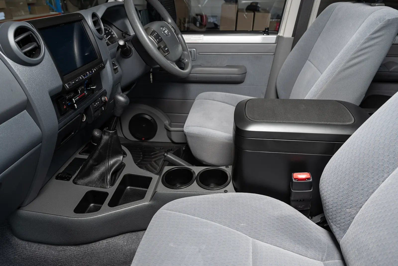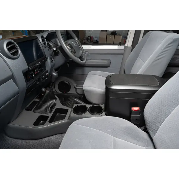 Includes: 2x Cup Holders, 2x Coin Trays, 2x USB-A Ports, 4x Carling Switch Provisions with Blanks, 2x Gearstick Boots, Base for Bushman fridge