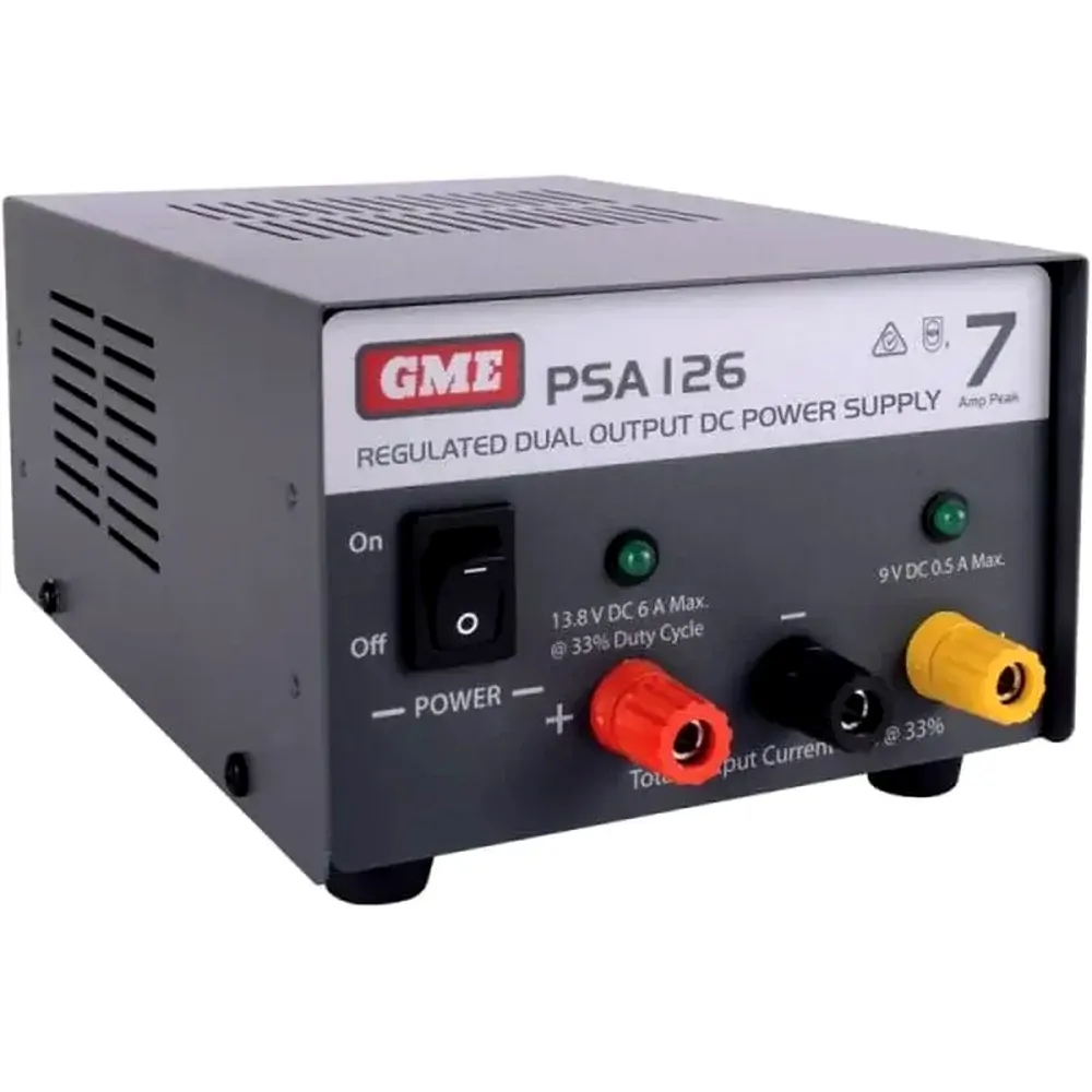 The GME PSA Series of Regulated Power Supplies offer quality and superior performance rarely found in power supplies sold in this price bracket. All PSA Series Power Supplies feature rugged steel construction, superior performance and unparalleled reliability with less than 20mV ripple at the continuous rating, making them ideal for all RF and computer applications.