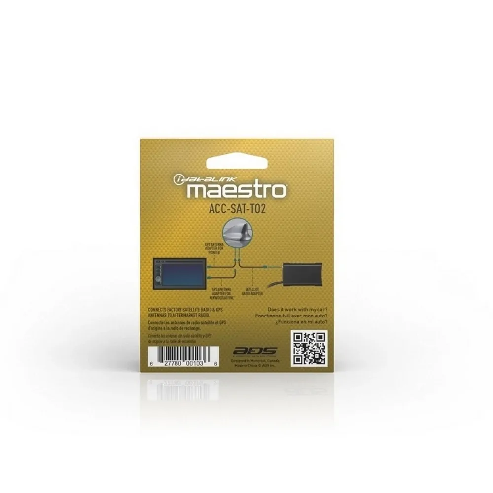 Satellite & GPS adapter for select Toyota vehicles. Includes one adaptor for connecting the Toyota satellite radio antenna to aftermarket satellite radio tuner. Also includes two adaptors to connect Toyota GPS antenna to most aftermartet radios.