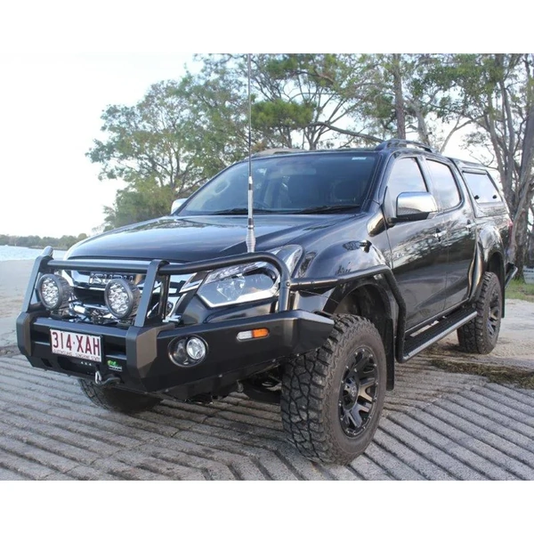 Perfect for work and play, the Deluxe Bull Bar features a triple hoop design that provides optimal protection. The inclusion of a 12,000lb winch-ready cradle means you can equip your 4WD for the most unexpected events. The Deluxe bar is also driving light, light bar, and UHF ready. Optional side rails and steps can be integrated seamlessly, while rated recovery points and under-body protection panels are also available for those who really know what they are doing!