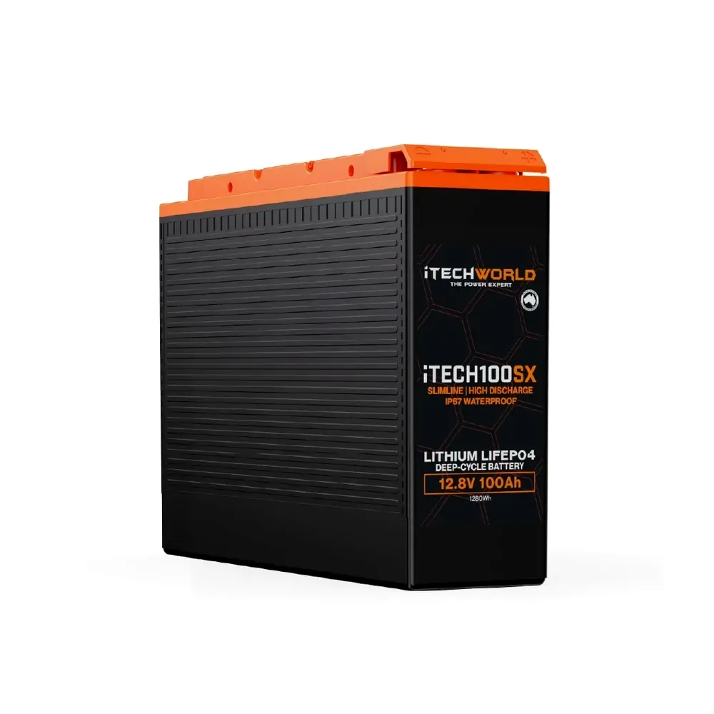 The iTECH100SX 100Ah Slimline Lithium Battery has been designed and developed from the ground up to be the ultimate lithium battery for all canopy setups and Dual/Single Cab utes! Although the iTECH100SX is only 110mm wide and weighs 10.9kg, the iTECH100SX packs a serious punch for a battery of its size.