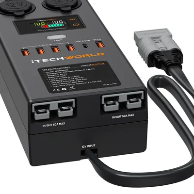 The iTechworld 12V Mini Control Box is effortlessly powered by a battery through a 50A Anderson plug.