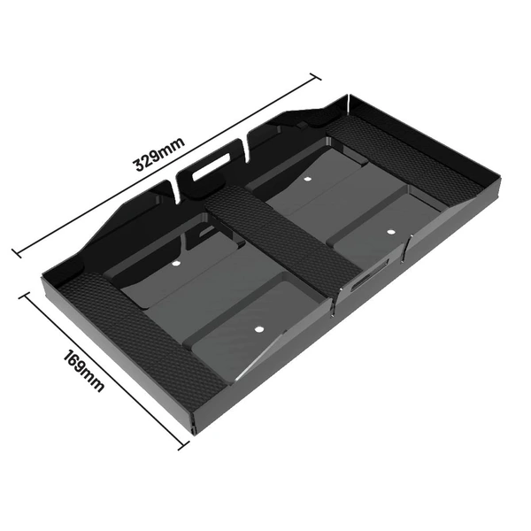 The tray boasts a sturdy metal build and is provided with four mounting holes, making it adaptable to a variety of installations. This makes it an ideal choice for those looking to safely mount their iTECH120X PRO lithium battery, whether it's behind the rear seats of contemporary 4WDs or within the canopy.