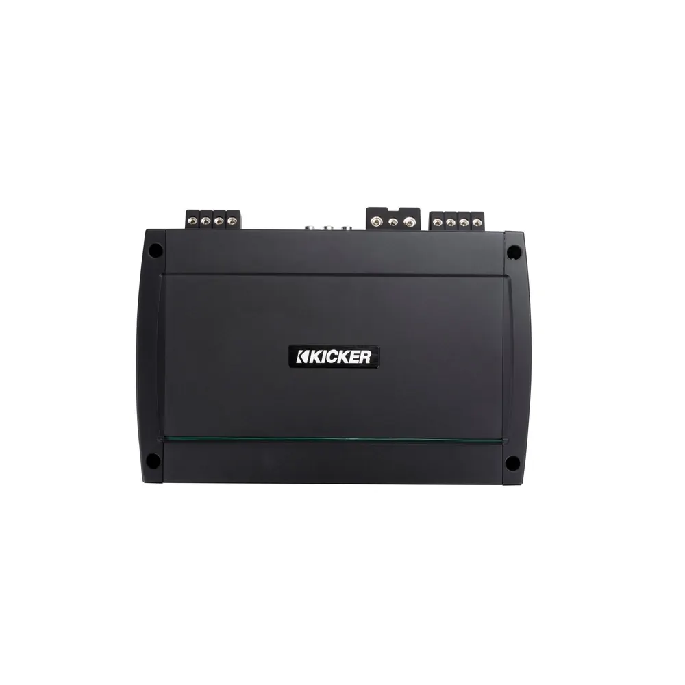 Gain, crossover and bass-boost controls are protected behind a gasket-sealed panel, as is the control cover hiding the settings, creating a water-resistant barrier to key controls. KickEQ™ delivers as much as an 6dB of extra bump with a simple turn of the knob. A powerful 24dB crossover is also included, letting you quickly tune your system to perfection. A full-range RCA output allows you to easily add another amplifier without running new signal cable to your KICKER KMC Media Center.