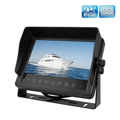 The MM7WQA is a compact yet robust 7-inch AHD monitor designed for demanding vehicle applications. With an IP69K waterproof rating, it ensures reliable performance in harsh environments. The monitor supports up to 4 video inputs, offering versatile display options, and features a high-resolution 1024x600 screen for clear visuals. Its durable design includes a sunshade and trigger wires for seamless camera integration, making it ideal for trucks, buses, and construction equipment.