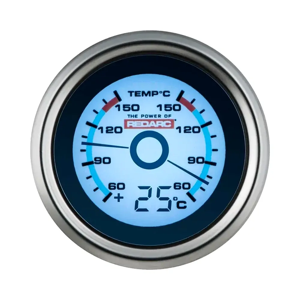 Dual Temperature 52MM GaugeThe REDARC 52mm dual temperature gauge is ideal for monitoring your engines oil and water (coolant) temperature.