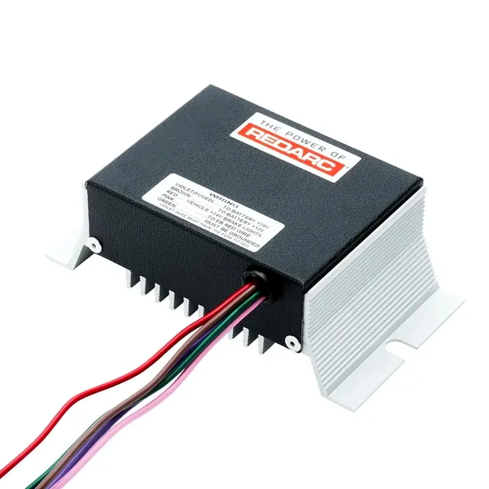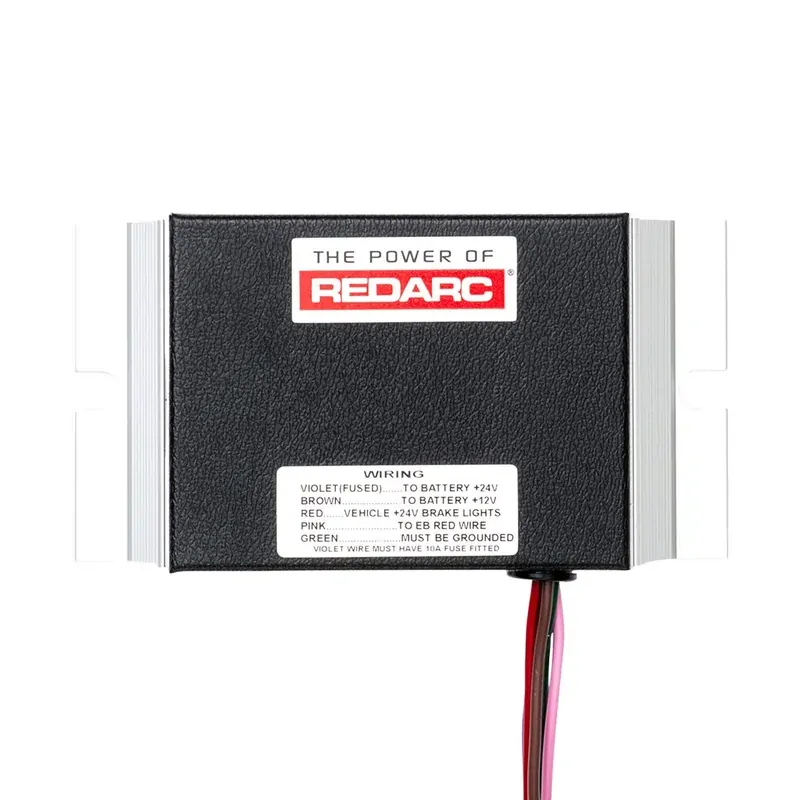 The EB24A is an adaptor designed to operate a 12-volt brake controller in a 24-volt vehicle, and:Allows 24-volt brake lights to switch on the EBAllows EB manual button to switch on 24-volt brake lightsProvides 24 - 12-volt charging so braking power can be taken from one batteryAbout the range of brake controllersThe REDARC range of electric trailer brake controllers provides an easy to operate method of controlling electric brakes on a trailer, camper-trailer, boat trailer or caravan.