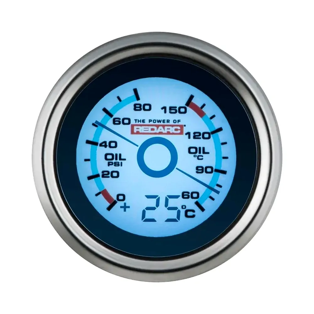 Oil Pressure & Oil Temperature 52MM GaugeThe REDARC 52mm single oil pressure & oil temperature gauge is ideal for monitoring your engines oil pressure and oil temperature.