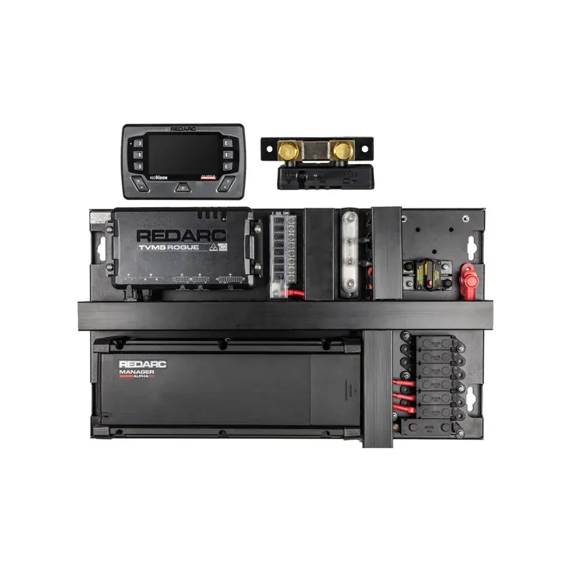 The QuickFit X40 includes the 50A Manager Alpha with RedVision Display and Smart Battery Monitor, along with two TVMS Rogue Control Modules, offering a fully integrated, pre-wired solution in one box.